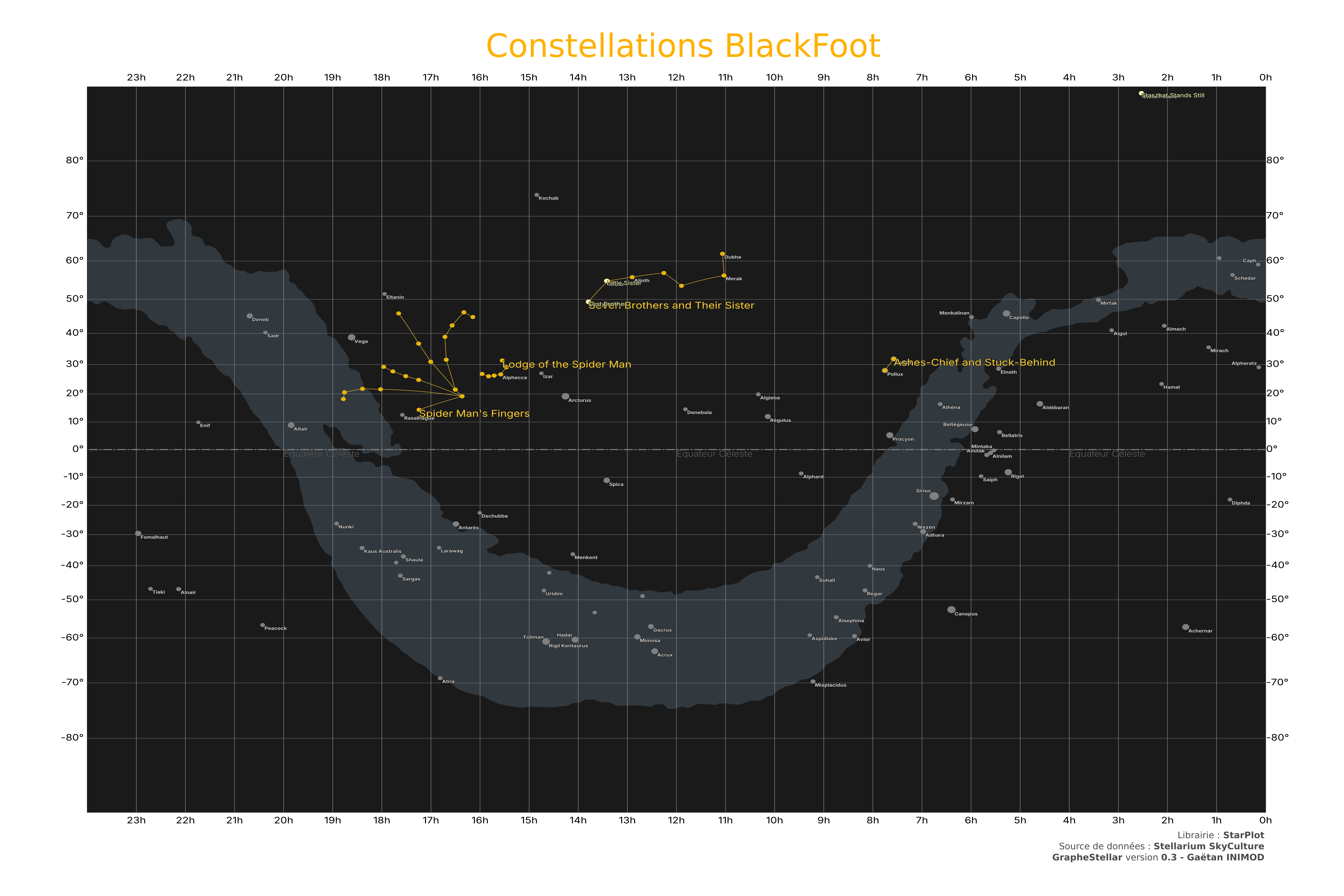 Blackfoot Source de données Stellarium Skyculture. Cartographie du ciel Graphe de la culture stellaire